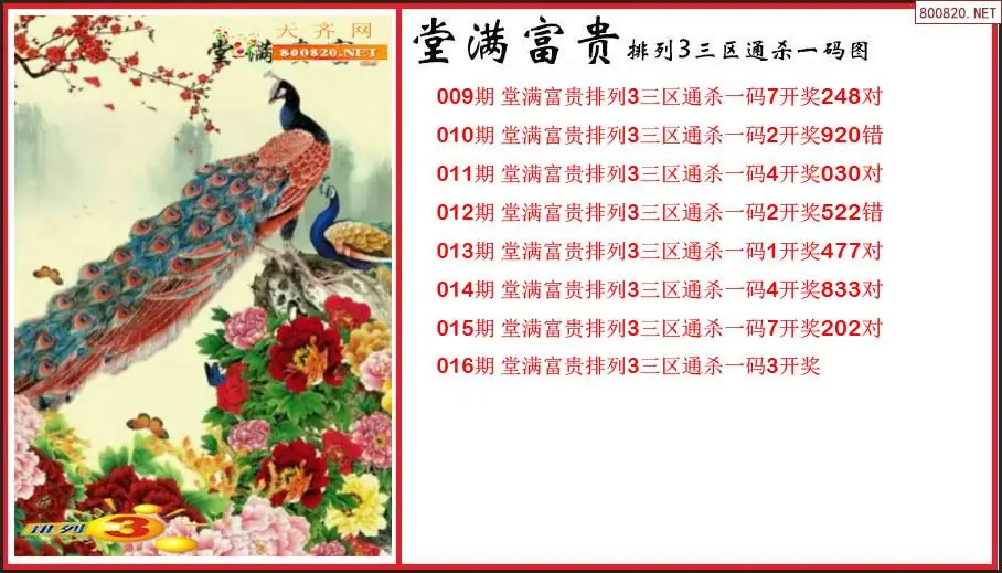排列3第2026016期堂满富贵杀码图谜(原创)