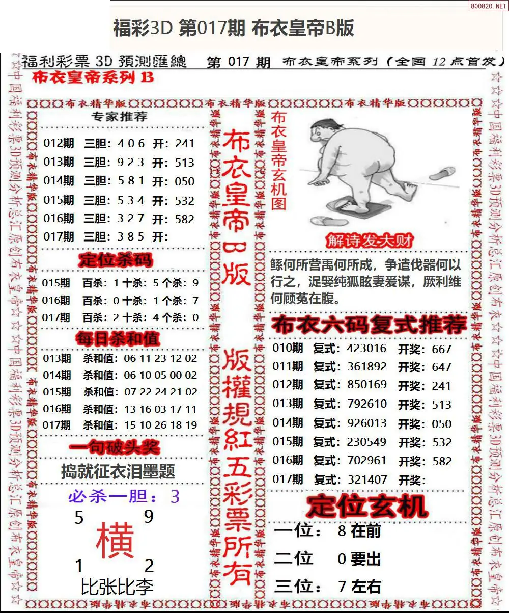 皇帝图26017期布衣皇帝+老夫子布衣3d图谜