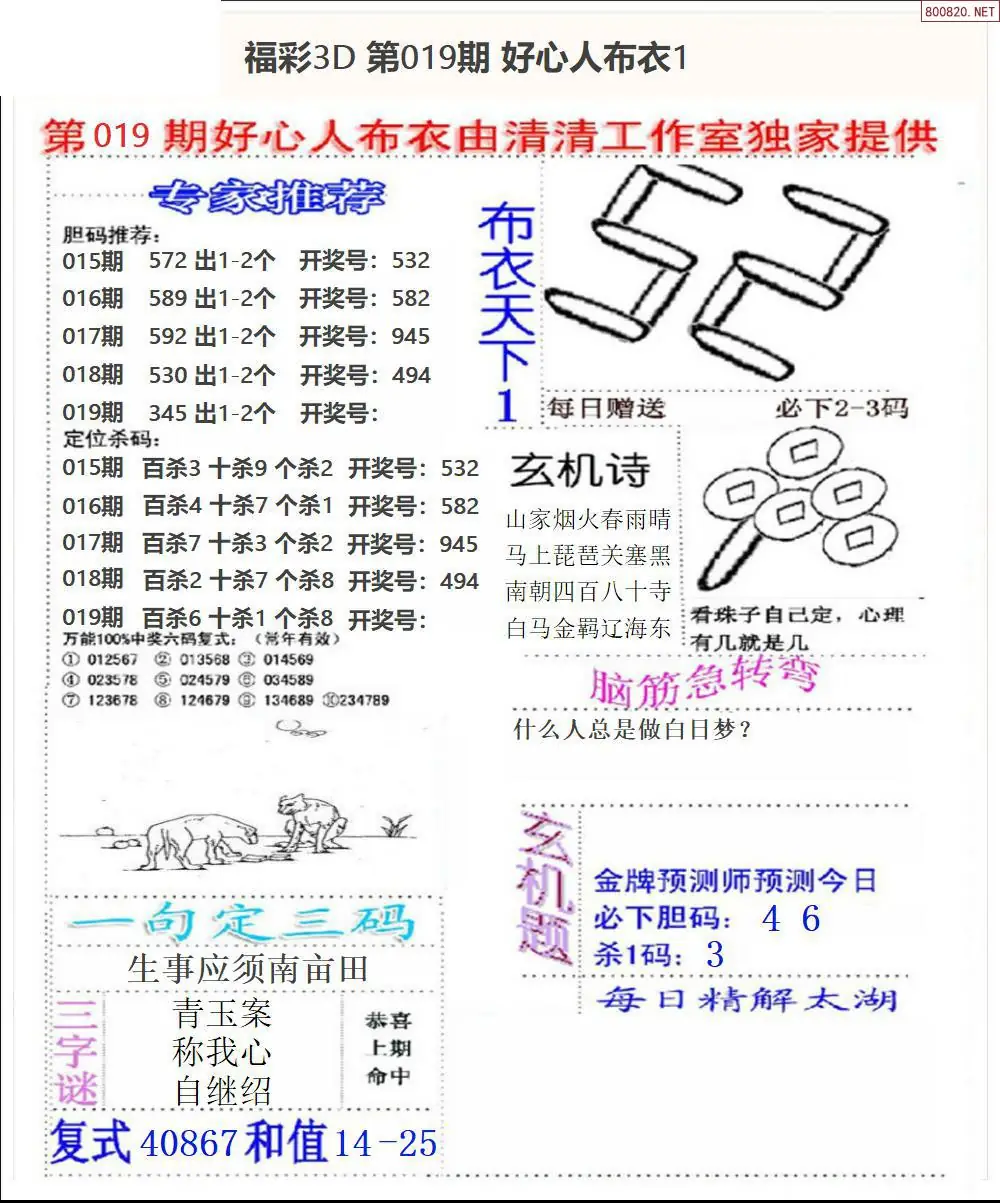 布衣图019期布衣定位杀+布衣神算图迷