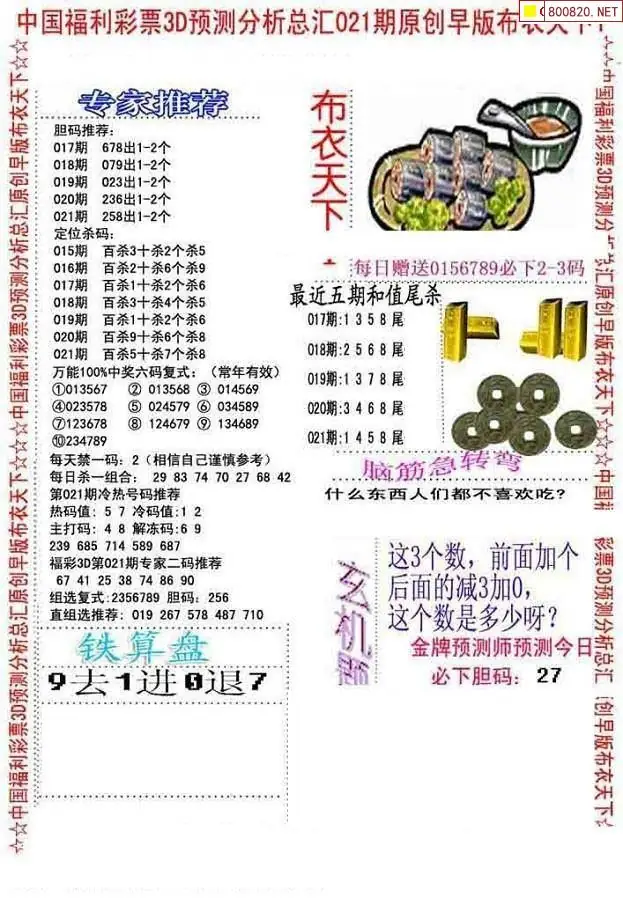 布衣图021期布衣定位杀+布衣神算图迷