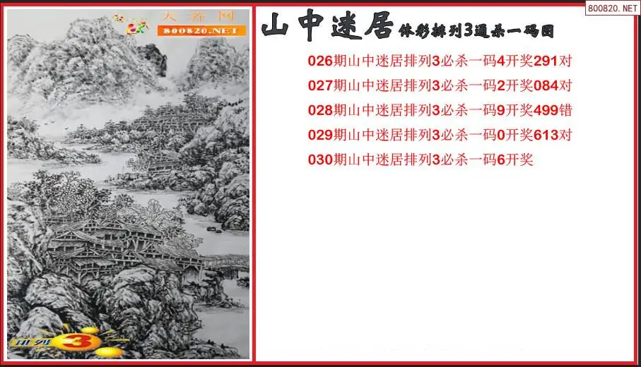 2026030期山中迷居体彩排列3通杀一码图(原创)