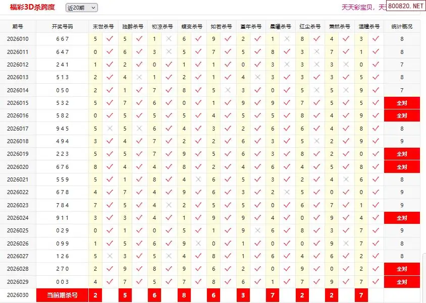 11 2026年福彩3D030期[仙子]杀跨度-原