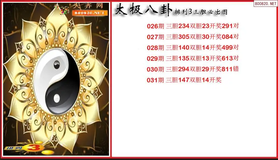 太极八卦2026031期排列3三胆必出图(原创)