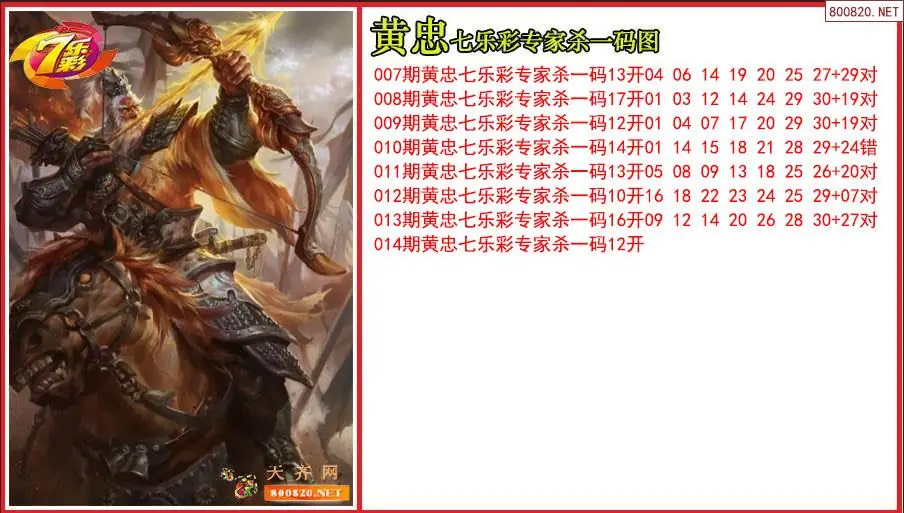 黄忠2026014期七乐彩专家杀一码图