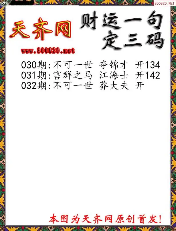 032期财运3D一句定三码字图谜