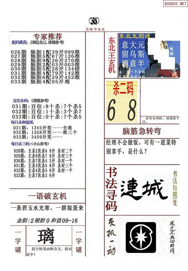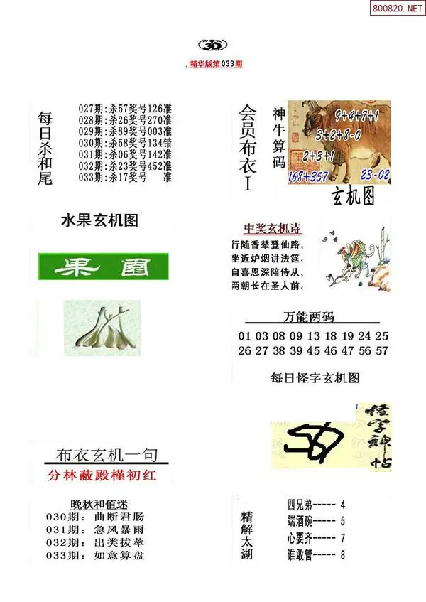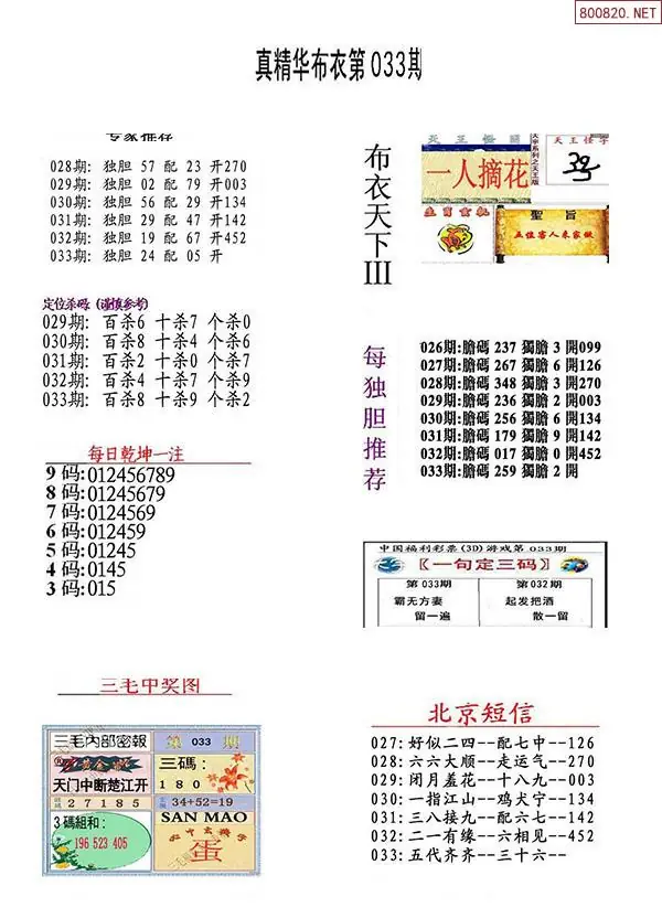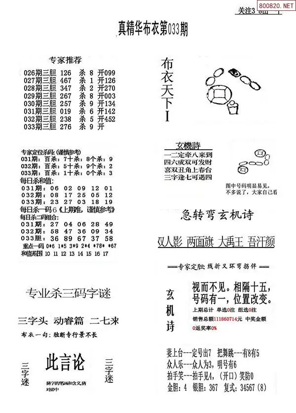 2026年033期精华布衣3D全图