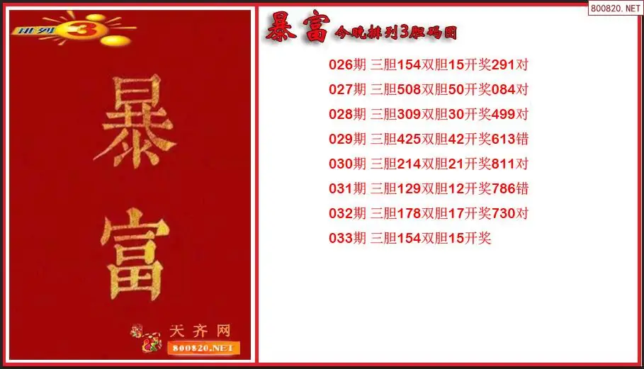 暴富2026033期今晚排列3胆码图(原创)