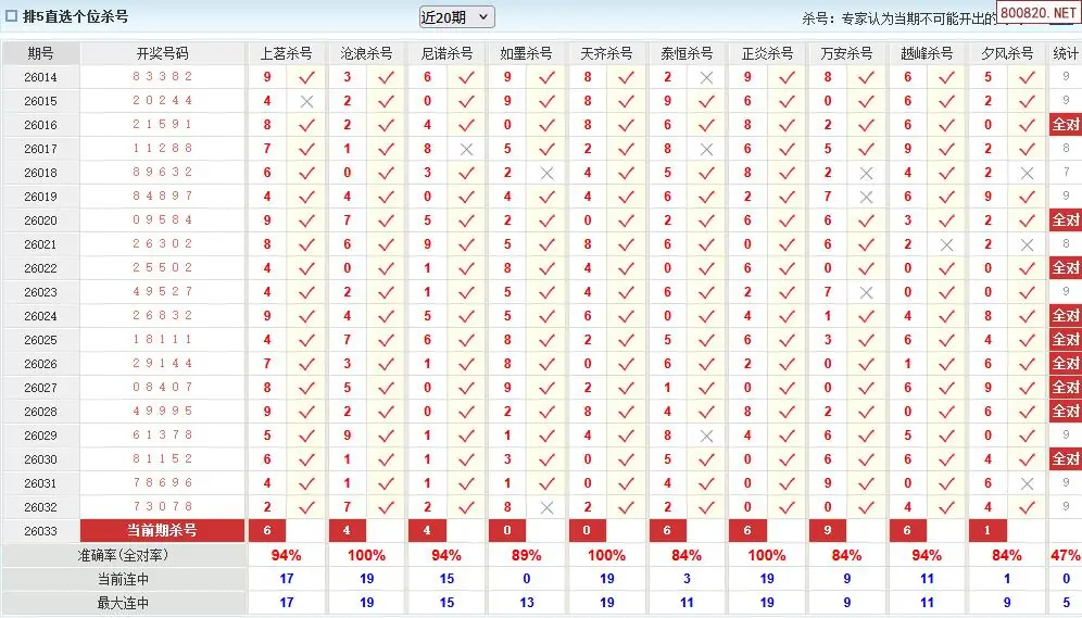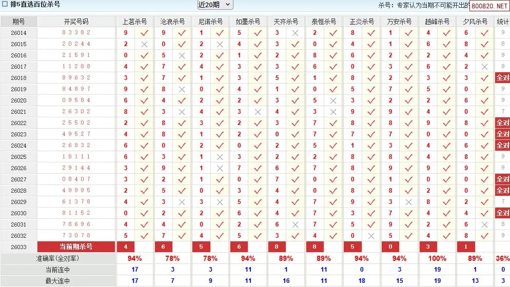 澳客彩票26年体彩P5033期十大大专家杀号