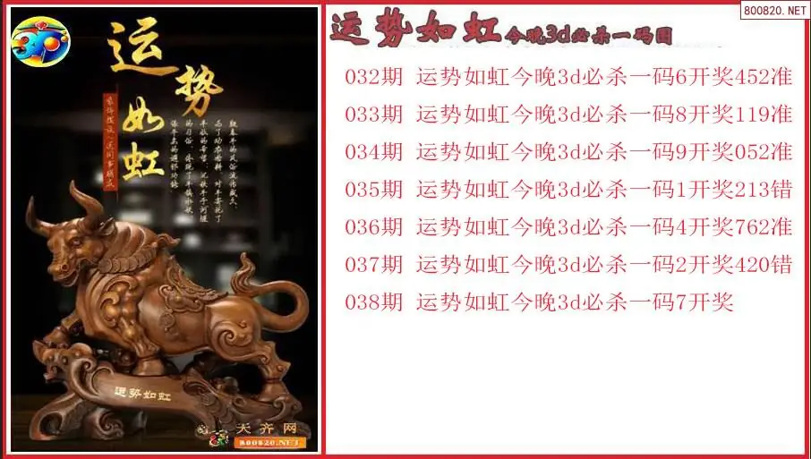 运势如虹2026038期今晚3d必杀一码图(原创)