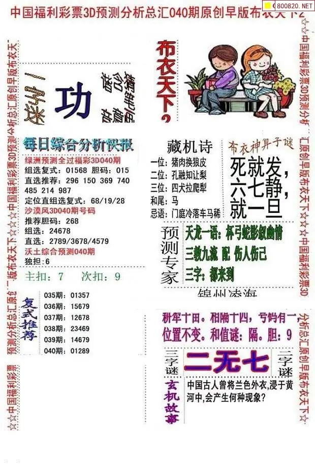 布衣图040期布衣定位杀+布衣神算图迷