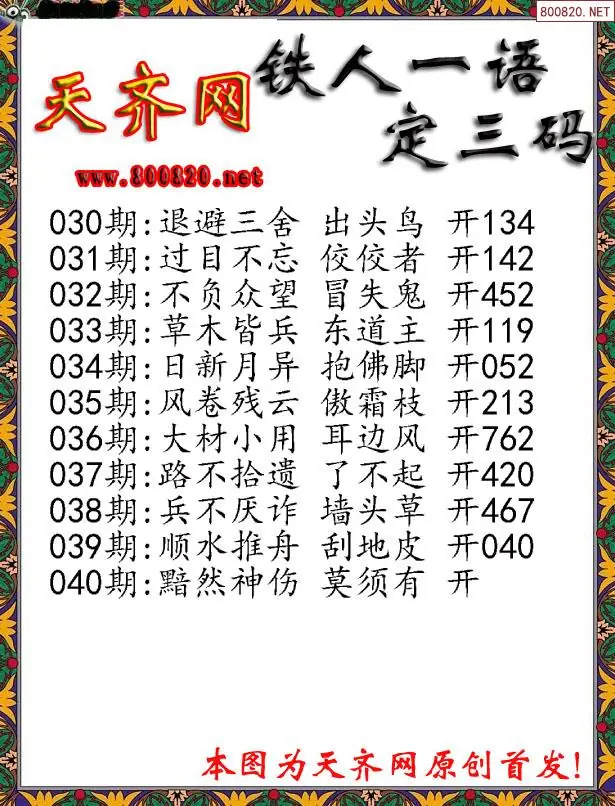 040期3D铁人一句定三码字图谜