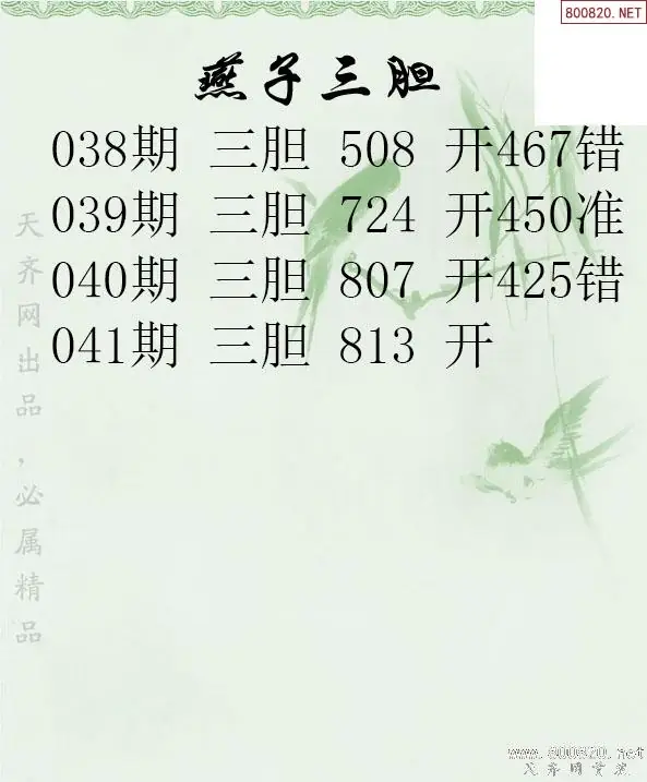 26041期燕子三胆3d胆码图谜-天齐原创