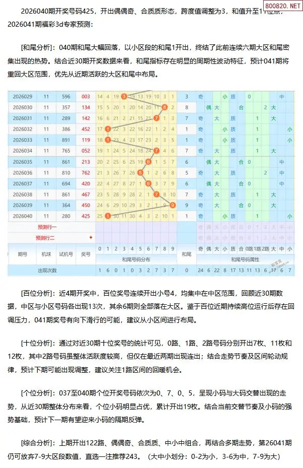 福彩3D第2026041期[玩彩高手]最准最新3d号码预测