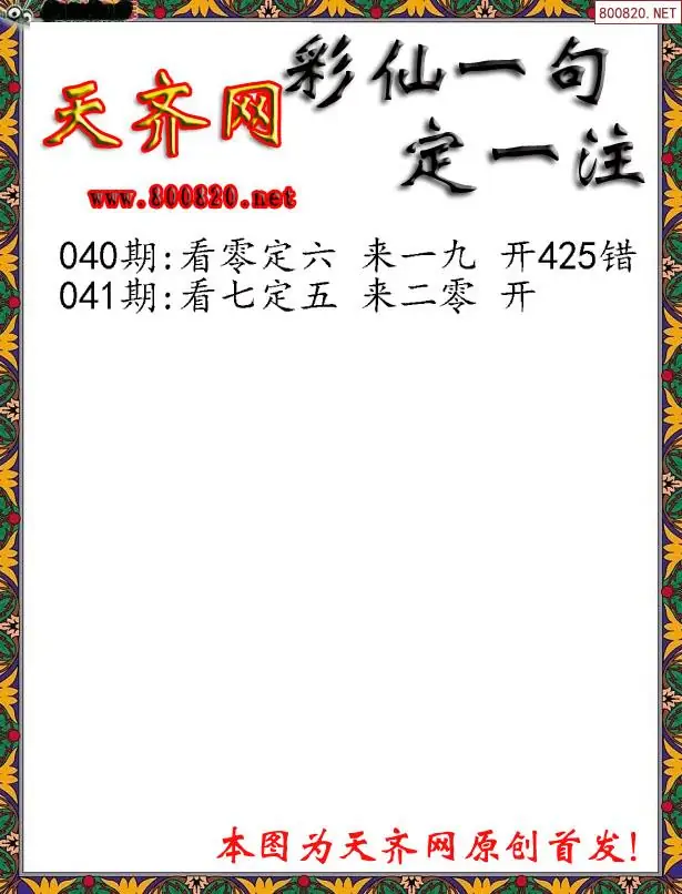 041期彩仙一句定三码3D字图谜