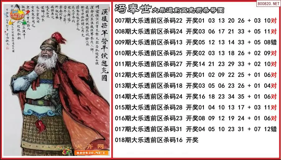 冯奉世2026018期大乐透前区免费杀号图-原创