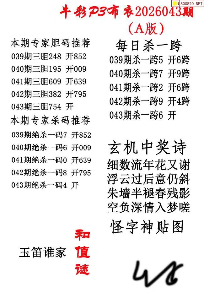 牛彩体彩P3布衣2026年043期AB版图谜(精华版)