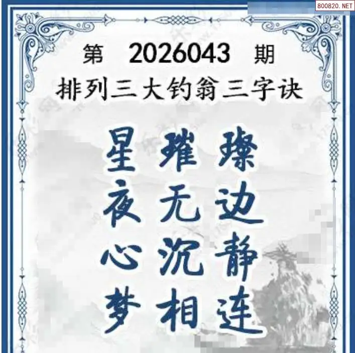 26年043期体彩p3大钓翁三字诀