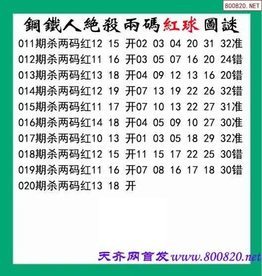 双色球26020期钢铁人杀两红图谜