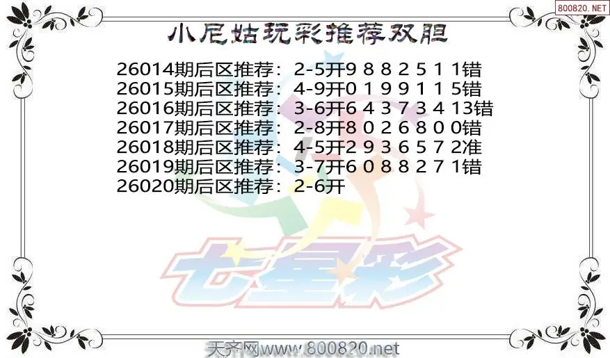 毒霸26年020期七星彩杀号图谜