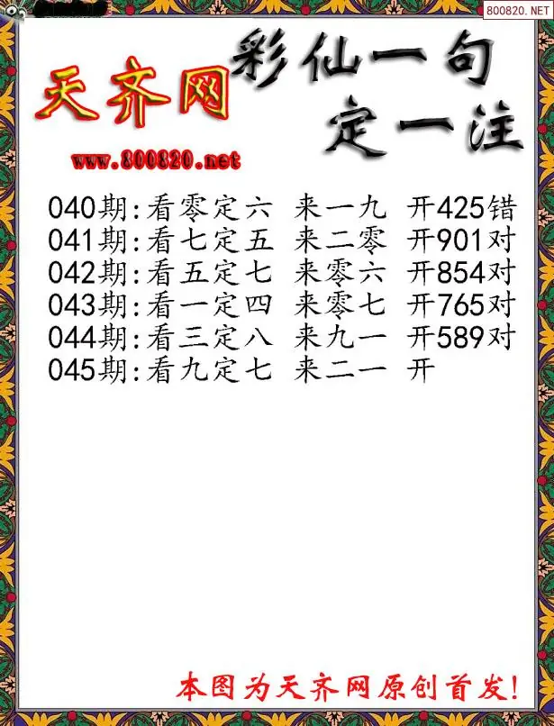 045期彩仙一句定三码3D字图谜