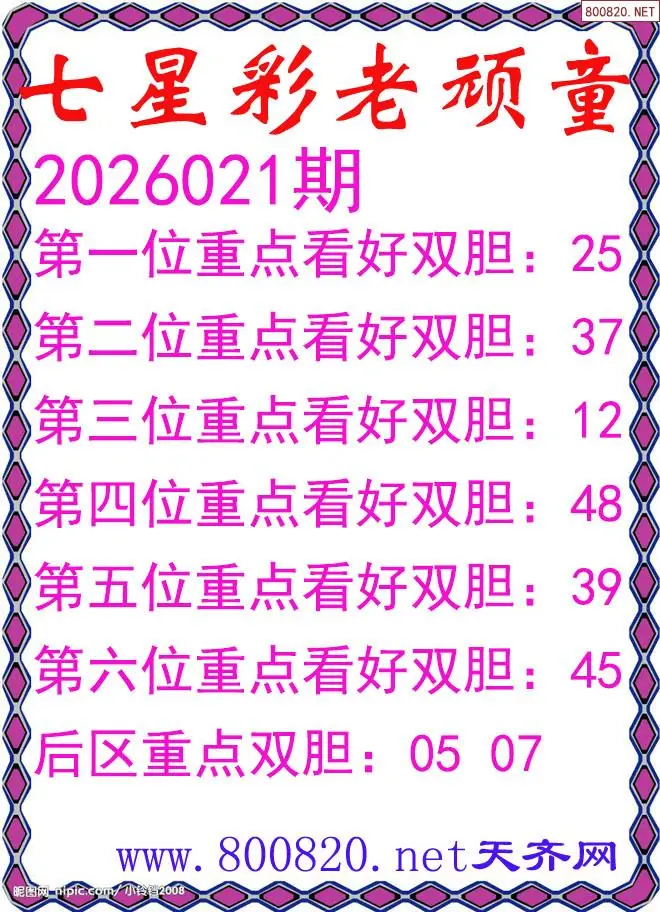 老顽童26年021期七星彩双胆图谜