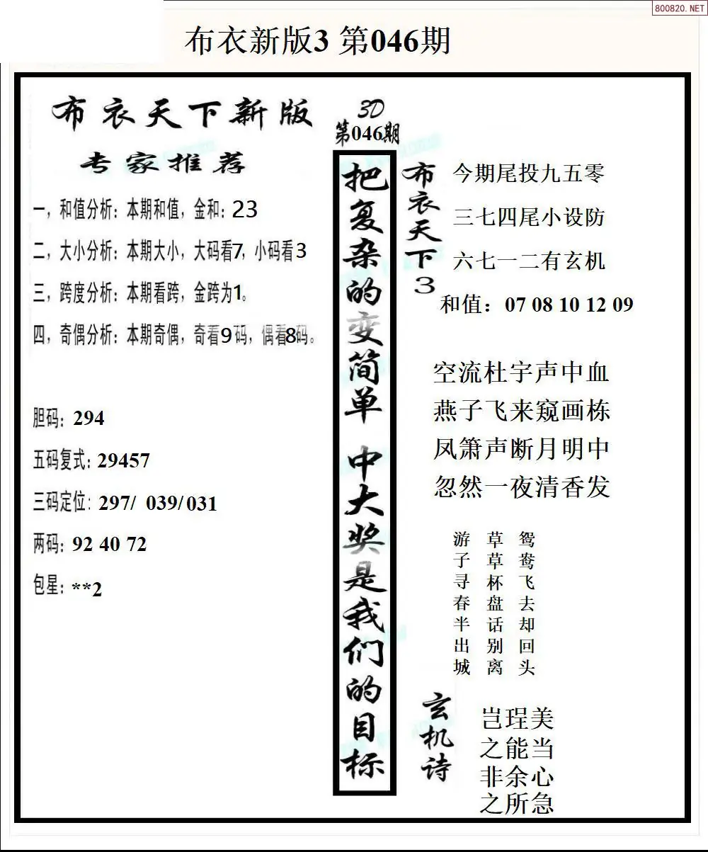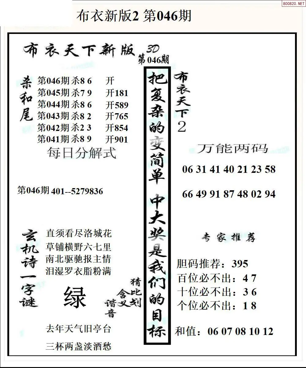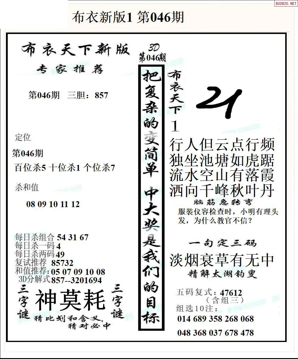 26046期新版3d布衣天下1234