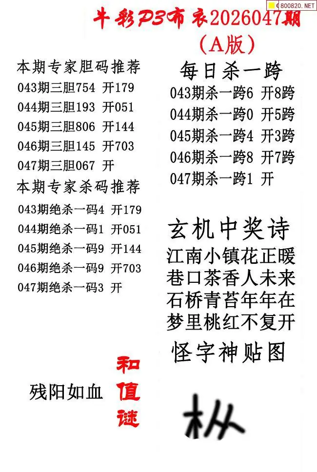 牛彩体彩P3布衣2026年047期AB版图谜(精华版)