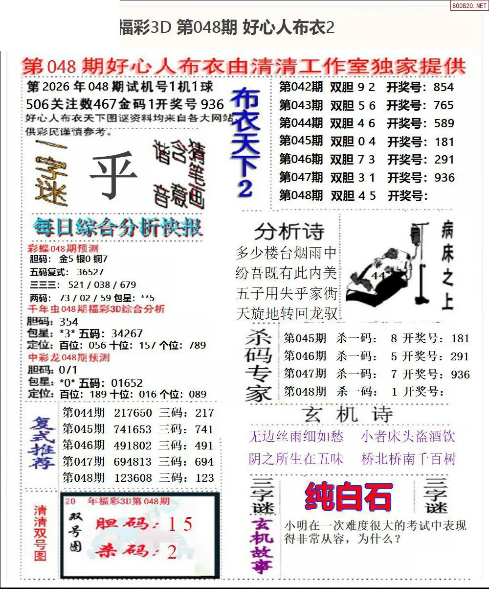 布衣图048期布衣定位杀+布衣神算图迷