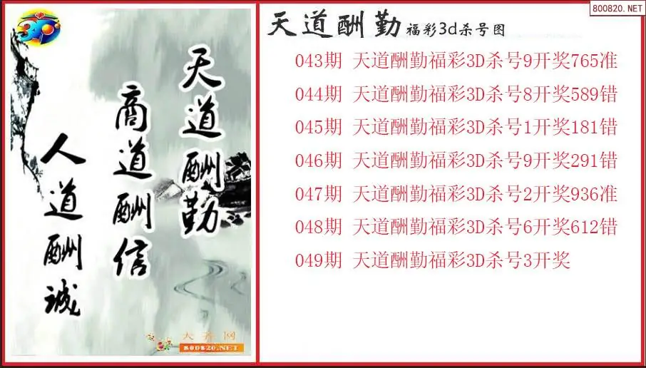 天道酬勤2026049期福彩3d杀号图(原创)