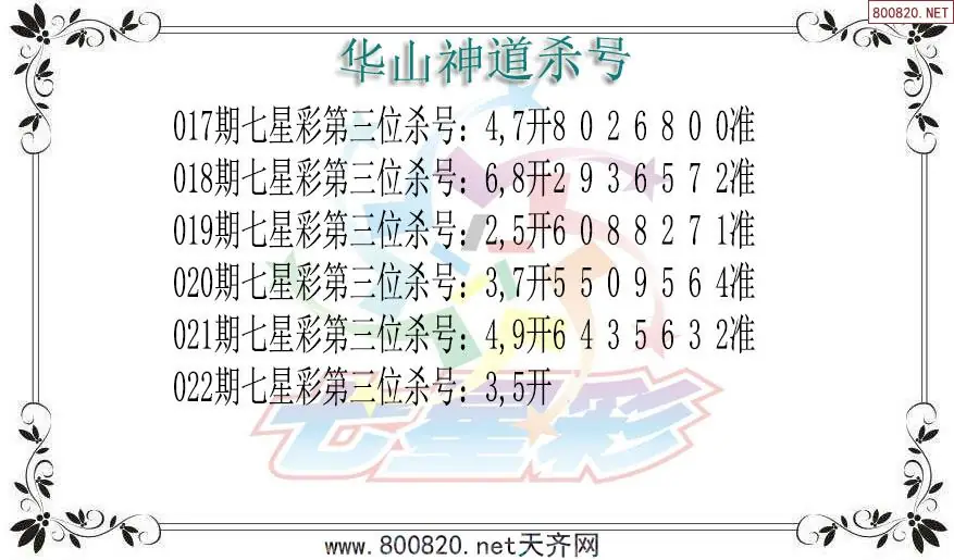 华山神道26年022期七星彩杀号图谜