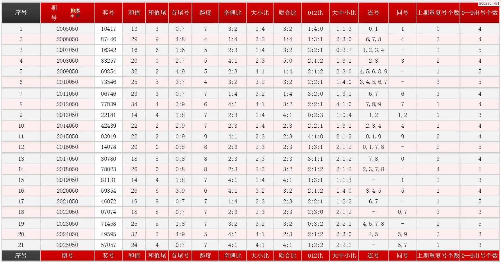 050期体彩P5历史同期对比图表+近期走势图分析