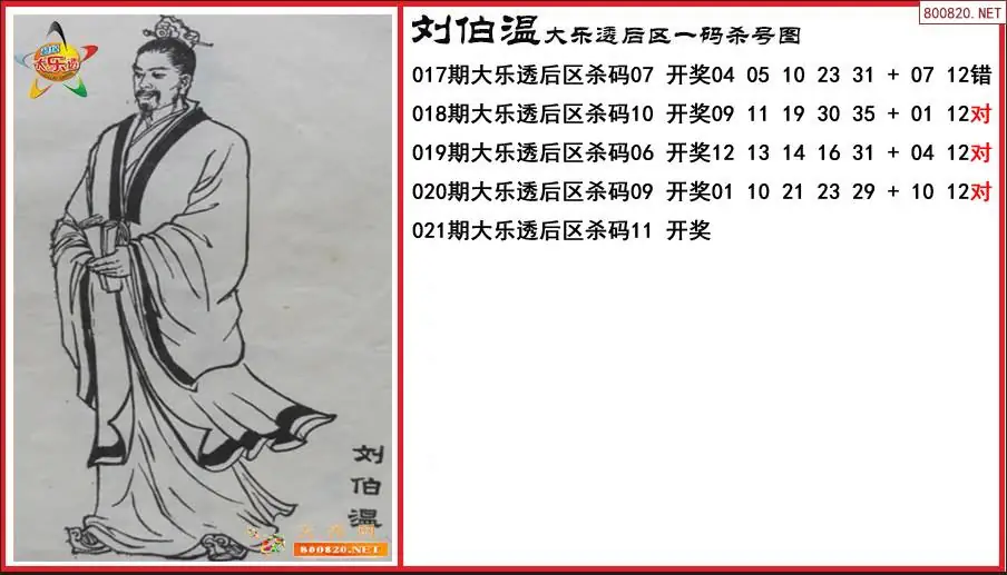 刘伯温2026021期大乐透后区一码杀号图-原创