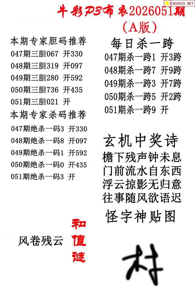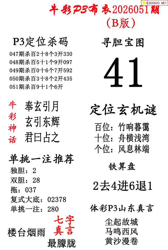 牛彩体彩P3布衣2026年051期AB版图谜(精华版)
