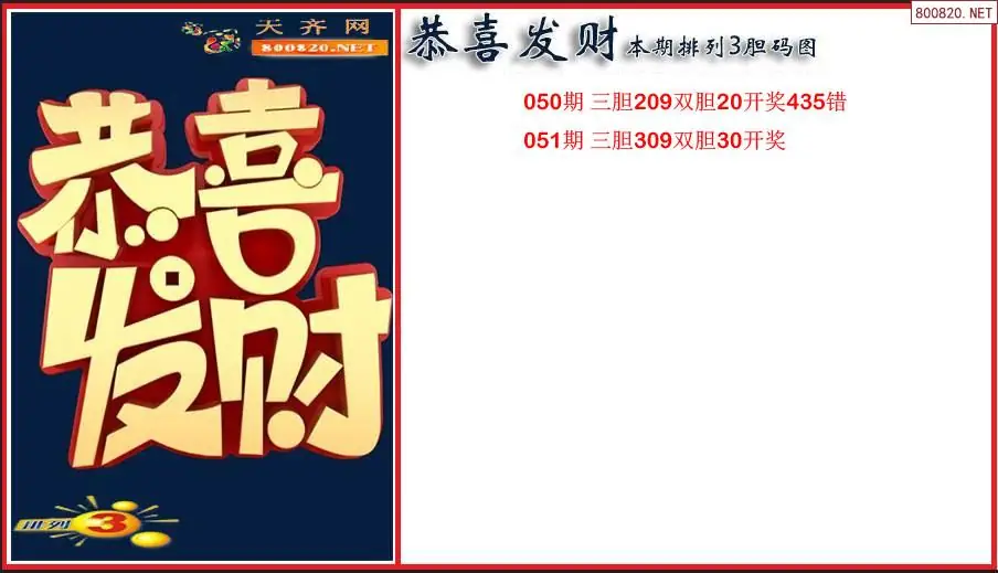 恭喜发财2026051期本期排列3胆码图(原创)