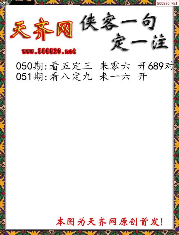051期侠客一句3D定三码字图谜