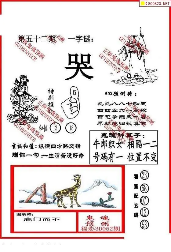 鬼魂图26052期一句中奖诗+鬼魂预测图迷