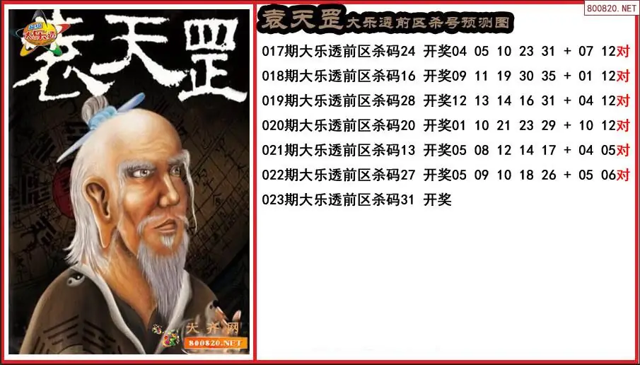 袁天罡2026023期大乐透前区杀号预测图-原创