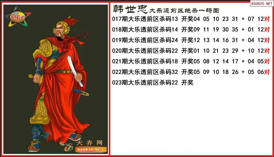韩世忠2026023期大乐透前区绝杀一码图-原创
