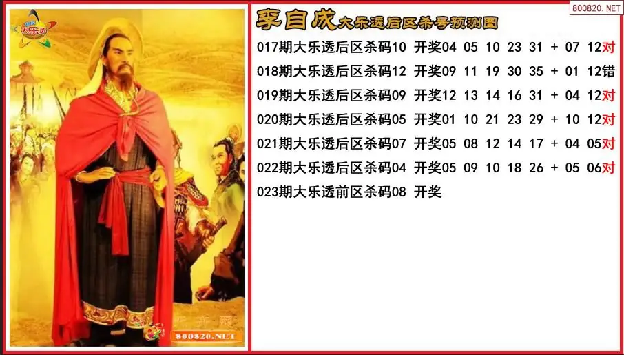 李自成2026023期大乐透后区杀号预测图-原创