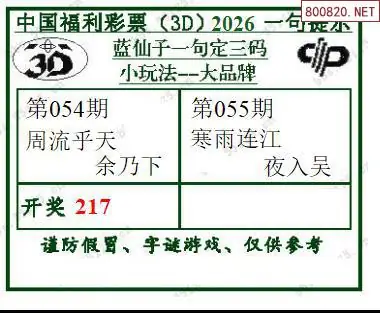 2026055期蓝仙子一句定三码3d图谜