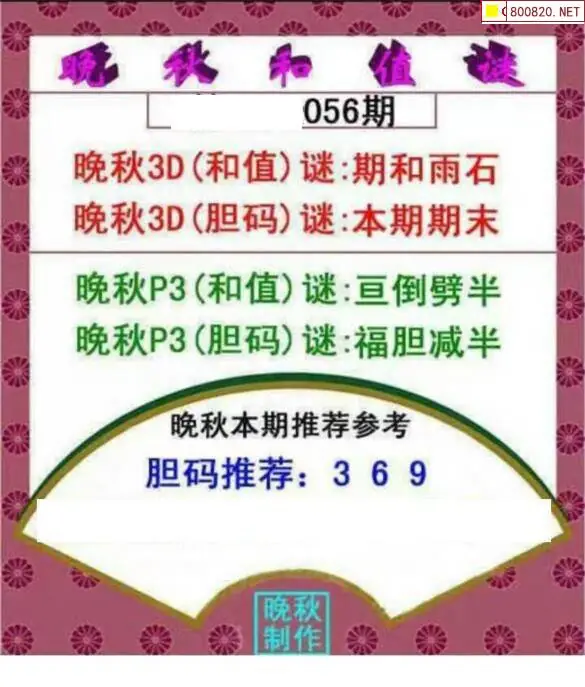 晚秋图26056期3d晚秋和值迷图谜版