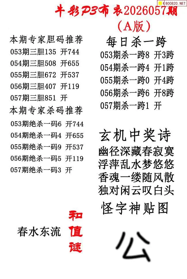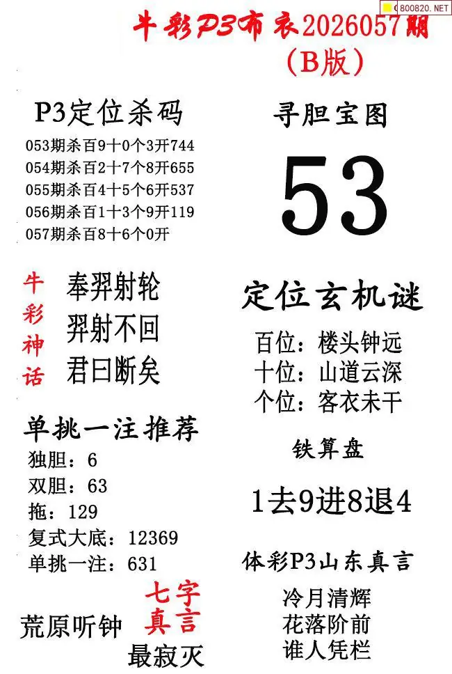 牛彩体彩P3布衣2026年057期AB版图谜(精华版)