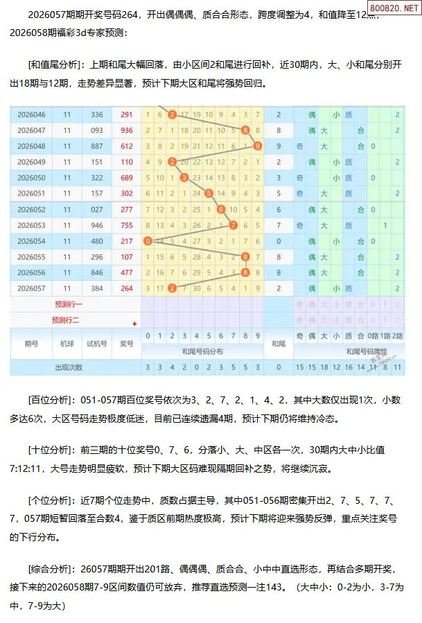 福彩3D第2026058期[玩彩高手]最准最新3d号码预测