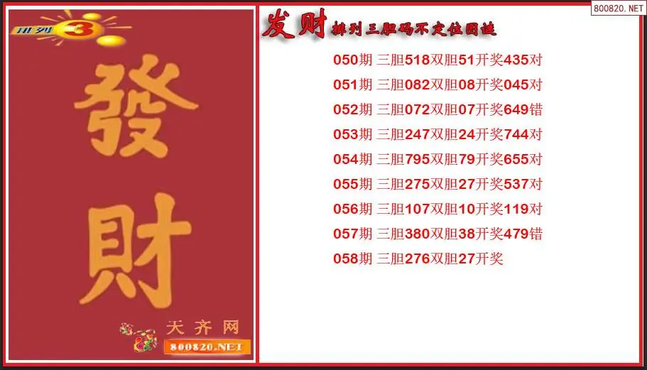 发财排列三2026058期胆码不定位图谜(原创)