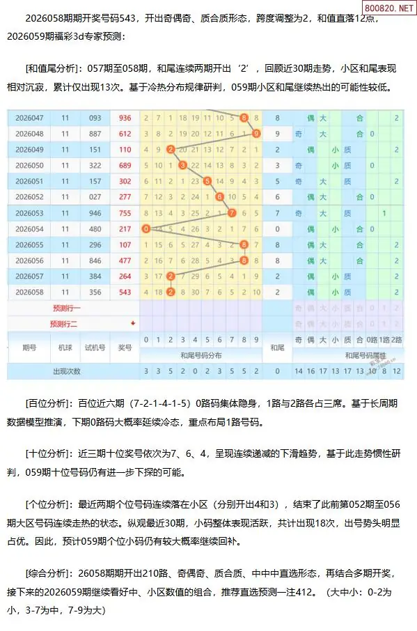 福彩3D第2026059期[玩彩高手]最准最新3d号码预测