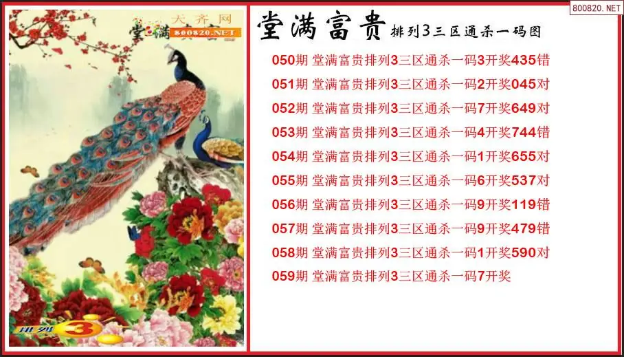排列3第2026059期堂满富贵杀码图谜(原创)