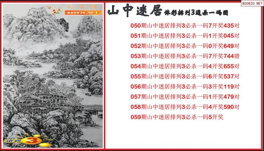 2026059期山中迷居体彩排列3通杀一码图(原创)