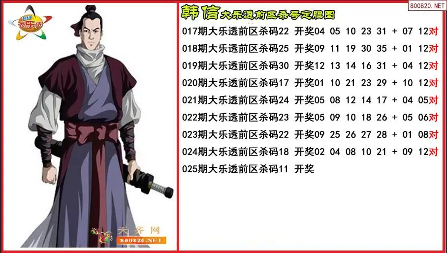 韩信2026025期大乐透前区杀号定胆图-原创