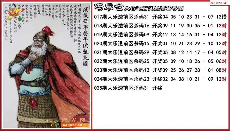 冯奉世2026025期大乐透前区免费杀号图-原创