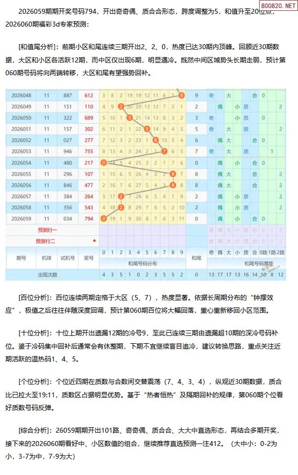 福彩3D第2026060期[玩彩高手]最准最新3d号码预测